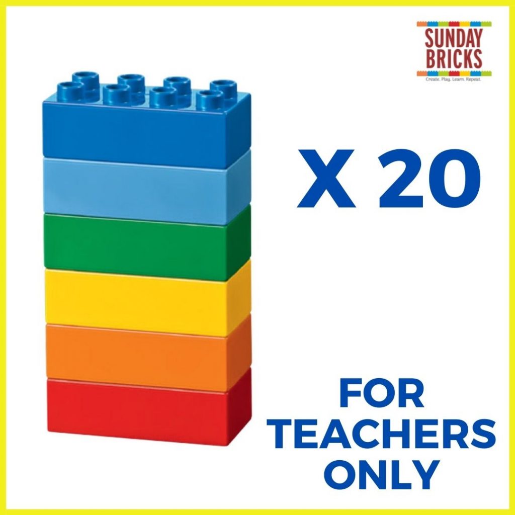 This is a pack of 20 Six Bricks. It consists of 120 bricks. There are 20 of each 6 colours – Red, Orange, Yellow, Green, Light Blue and Blue.